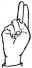 На ћирилици написано ЛУНА РАДИВОЈЕВИЋ састоји се из 15 слова [?]. Исписано ћириличном једноручном азбуком за глувонеме:
